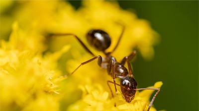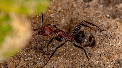 Carpenter AntCarpenter ants feed on dead and living insects, aphid and scale honeydew, juices of ripe fruit – preferably sweet. They travel in loose trails, forage mostly late in the day or at night and prefer moist or humid environments. Although, this species does not feed on wood, they will bore into wood to make nests, sometimes causing serious structural damage.