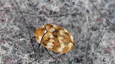 Carpet BeetlesMost common in the northern states, this beetle infests carpets and feeds on the fabric. It also feeds on animal products that are left undisturbed, such as wood, leather, furs, etc.