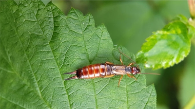 Identifying Characteristics: Earwigs are most readily recognized by the forceps at the end of the abdomen. Species range from 1/2″ to 1″ in length, and from light reddish-brown to jet-black in color. Some species are marked with stripe or bands on body and legs.