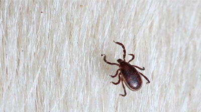 Identifying Characteristics: Adult ticks are flat, about 1/8″ long and uniformly red-brown with tiny pits scattered over the back. Unlike the male, the female enlarges after feeding to about 1/2″ long and 1/4″ wide. The enlarged portion of the body becomes gray-blue to olive in color.